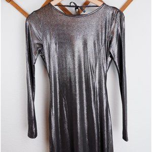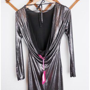 NEW Boohoo Grace Metallic Cowl Back Long Sleeve Maxi Dress, size 6, new with tag