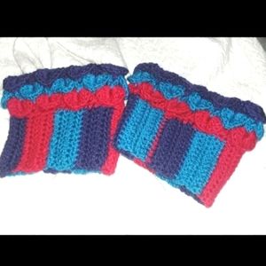 Hand Made Women's Crochet Boot Cuffs. Large size 12 inches in circumference & 5 inches tall. Very vibrant & beautiful fall/winter colors. Hand made by Beth as such is a ONE OF A KIND & UNIQUE item.