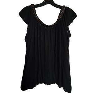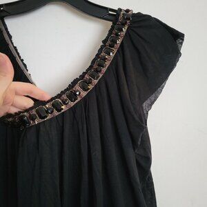 NEW Bordeaux Jewel Beaded Embroidered Scoop Boat Neck Flutter Sleeve Blouse Sm