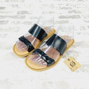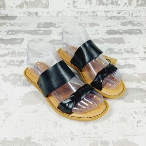 NEW Born Morena Black Leather Slip On Summer Flat Sandals i959