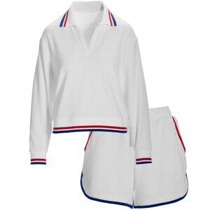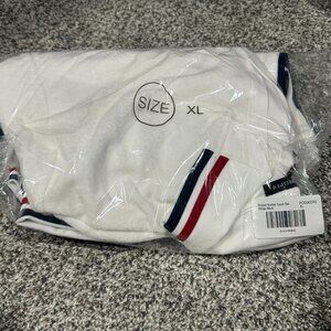 NEW Boston Proper White Terry Striped Border Sport Set, Shorts and Top, Size XL