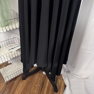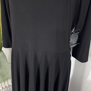 This is a new Boston Proper black midi dress in size XL with a solid pattern and long sleeves. It features a round neckline, pullover closure, and a modest shift style. Suitable for formal events, workwear, or business settings, this dress is made of polyester and spandex material. It also includes a tie back detail, offering a traditional and elegant look. Layer it for all different occasions.