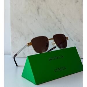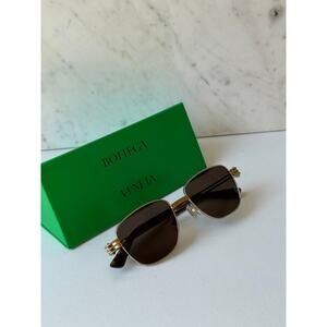 Brand new Bottega Veneta BV1380S 001 Two Toned Silver + Gold Metal Rounded Square Sunglasses.