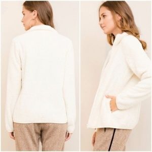 NEW Boutique Fuzzy Faux Fur Sherpa Fleece Full Zip Jacket Cream Winter Entro NWT