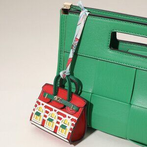 Celebrate your love for designer bags with this adorable vegan leather charm shaped like an iconic handbag.