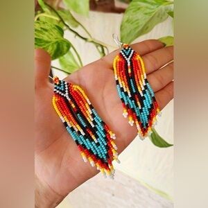 NEW Boutique Colorful Western Beaded Tassel Fishhook Fashion Earrings in Glass Rice Beads.