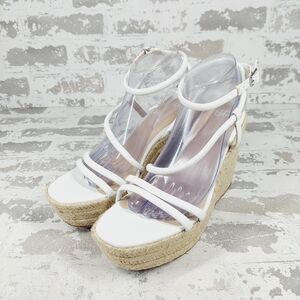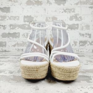 NEW Bp Cohan White Strap Buckle Open Toe Espandrille Platform Wedge Sandals V359