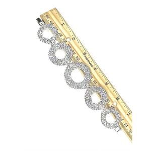 Another STUNNER!!! Clear crystal rhinestones are all prong set in hand soldered silver tone metal. The circles are each curved slightly to sit properly on your wrist. Please see photos for close ups & measurements. As always, if you have any questions, please don't hesitate to ask & THANKS SO MUCH for stopping by BunnyBlvd!!!