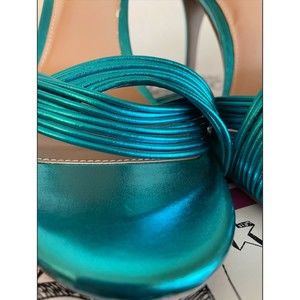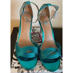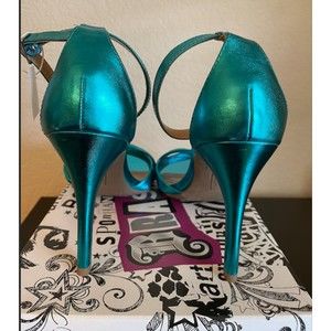 Brand new, never worn. Gorgeous metallic turquoise blue green ankle strap 4 inch heels. These look really great in person! Comes with this original box if buyer wants. Size 9.5 True to size.