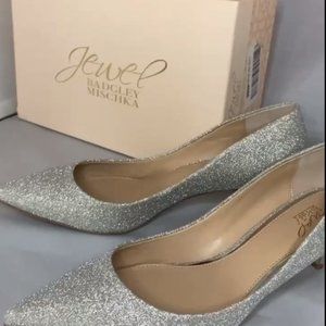 NEW Bridal / Wedding Jewel Badgley Mischka Silver Glitter Kitten Heels Sz 10