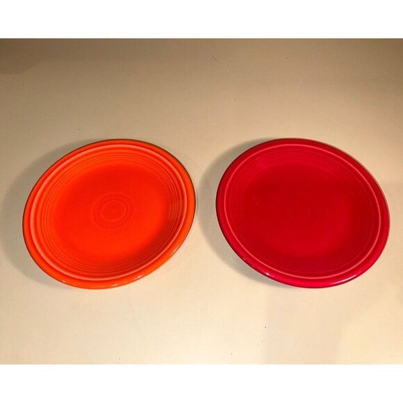 Set include one red plate and one orange plate. Perfect condition, no cracks, no chips, no crazing.