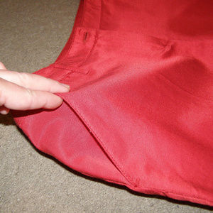They are really red, have 2 open pockets in front, none in back