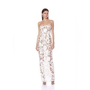 NEW Bronx and Banco Dahlia Maxi Dress in White Silver Floral Strapless, size M