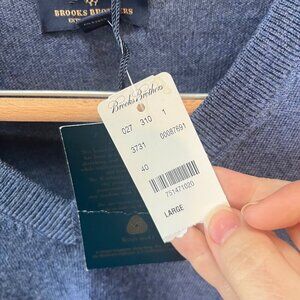 NEW Brooks Brothers Mens Large 100% Merino Wool V-Neck Sweater Blue