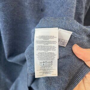 This Brooks Brothers sweater offers a classic style with its V-neck design, making it a versatile addition to any wardrobe. Crafted from extra fine merino wool, it provides warmth and softness, suitable for both casual and formal settings. Its blue hue complements various outfits, enhancing your sophisticated look.