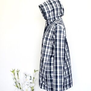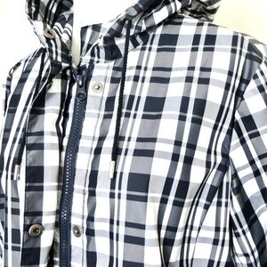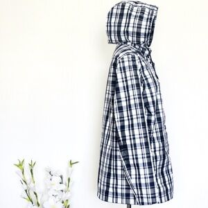 NEW! Brooks Brothers Red Fleece Plaid Print Rain Coat Jacket Navy Blue SZ 6
