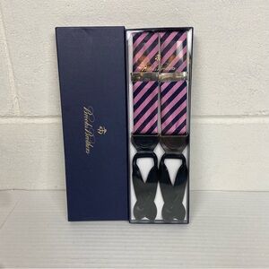 NEW Brooks Brothers Suspenders Braces Navy/Pink Stripe Adjustable Y Back Leather