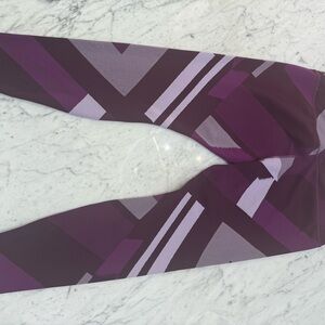 Vibrant leggings with a bold purple geometric pattern. Perfect for active kids.