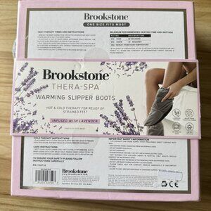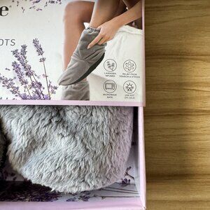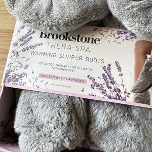 NEW Brookstone Thera Spa Warming Slipper Boots Lavender Infused Gray Fleece OS