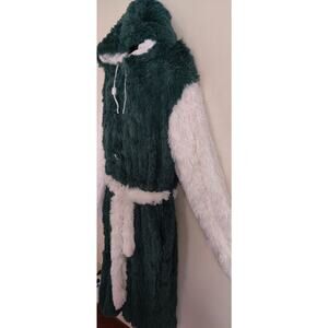 New with Tag, I am not sure how to describe this robe coat. Very soft & luxurious. Green and White in color. It is fairly heavy and very soft and furry. Faux type fur. It has 2 pockets, one on each side and detachable belt. Has Hood. Soft White fleece inside. BROTOGA created by Dormco.