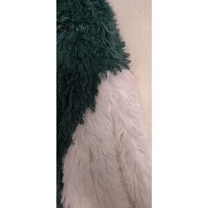 NEW Faux Mongolian Type Fur Coat Green & White Hooded Furry Robe XXL NWT SHAGGY