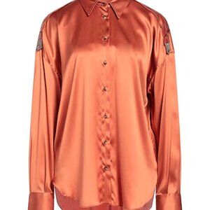 NEW 🧡 Brunello Cucinelli Embellished silk-blend satin shirt XS ✨ NEW