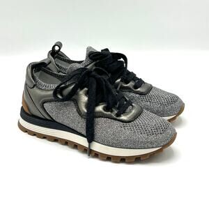 NEW Brunello Cucinelli Metallic Knit and Leather Sneakers Size 35.5 (US 5.5)