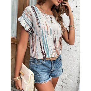 NEW BRUSH PRINT SHORT SLEEVE BLOUSE