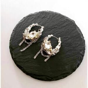 Gorgeous Chunky Molten Metal Hoop Earrings in Crumpled Silver with a Stunning CZ set in a Gold Claw. Brand New, without tags, please see photos for close ups & measurements. As always, if you have any questions, please don't hesitate to ask & THANKS SO MUCH for stopping by #BunnyBlvd !!!