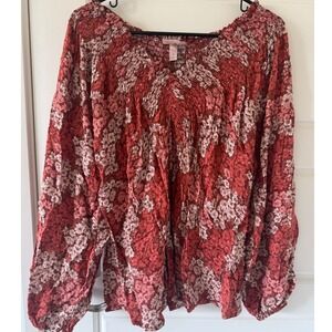 New with Tags Buckle sz S Women's 100% Rayon Red Pink Willow & Root Floral Ruched Puff Sleeve Top Boho Feminine