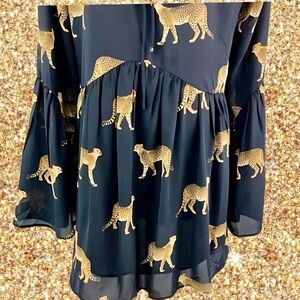 NEW! Buddy Love “Lara” Cheetah Dress with Back Tie and Flowy Bell Sleeves!