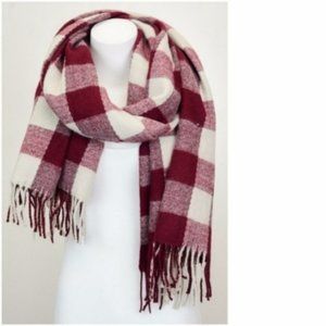 NEW Buffalo Check Blanket Scarf Shawl Plaid Wrap Fringe Burgundy Red Boutique