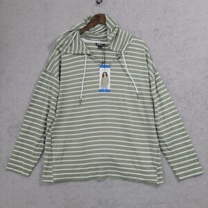NEW Buffalo David Bitton Womens L Striped Long Sleeve Hooded Pullover Top