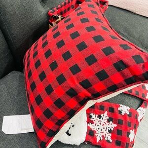 NEW Buffalo Plaid Red Black Christmas Decorations Bundle Set Stockings Basket