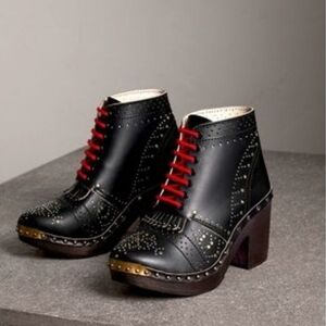 NEW Burberry Italy Riveted Studded Leather Heeled Clog Ankle Boots $1295 Size 40