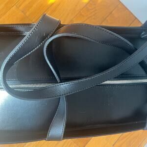 Black Wool with Leather Trim and Brushed Metal Hardware