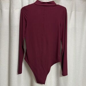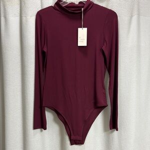 NEW Burgundy Mock neck body suit Sz M casual work neutral basic layer career