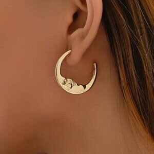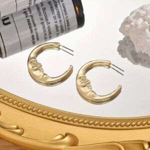 NEW Burnished 18K Gold Plated Crescent Moon Hoop Earrings