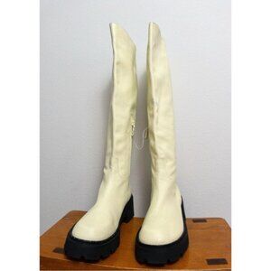 NEW By FAR Russel Lamb Leather Knee High Boots 40 Ivory Chunky Lug 10 Platform