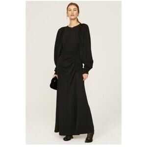 NEW By Malene Birger Cheyla Gathered Ruched Maxi Dress Black XL