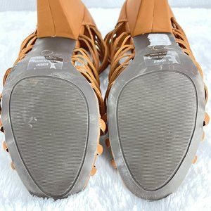 NEW! C COMFORT tan strappy sandal 3" heel zipper back over ankle - SZ 8