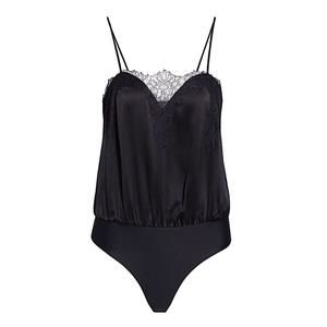 Crafted with soft and delicate lace trim, this lightweight, silk charmeuse bodysuit is your ultimate staple item. With adjustable straps, this feminine, classic and timeless Cami will be perfectly integrated into your every day style. Can easily be worn with a strapless bra. Black silk sandwash charmeuse. Lace trim - 100% nylon. 100% silk. Dry clean only. Imported. Adjustable straps. Thong bottom. Relaxed fit