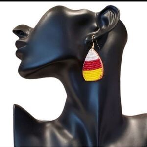 NEW CANDY CORN RICE SEED BEAD DANGLE EARRINGS FALL AUTUMN HALLOWEEN