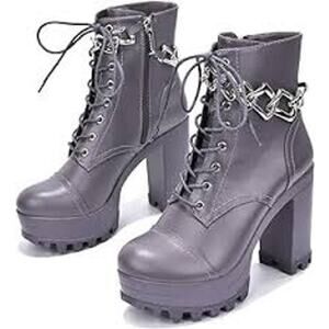 NEW (NEW WITHOUT BOX) CAPE ROBBIN WOMEN'S FELIX CHAIN BLOCK HEEL LUG PLATFORM BOOTS PURPLE SIZE 7M.