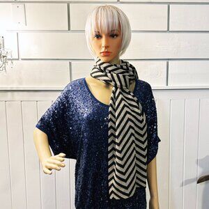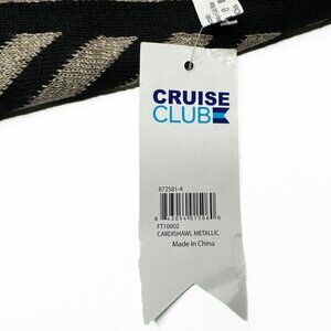 NWT Shawl Cruise Club Cardishawl shiny black/Gold Metallic Chevron Stripe Pattern Scarf.