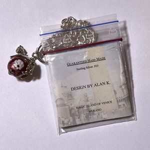 NEW CAT Bracelet Venetian RED Glass 7.5 Inch Length 925 Silver ITALY
