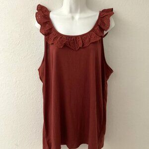 NEW CATO MERLOT LACE SLEEVELESS PLUS TOP 18-20W