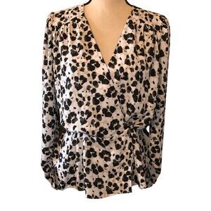 Darling wrap top in a versatile color palette. You decide if it’s a floral or animal print. Either way, the perfect choice for any occasion from career to cocktails.