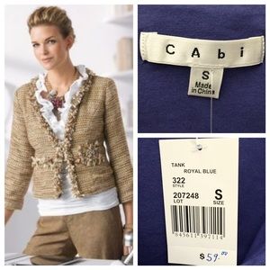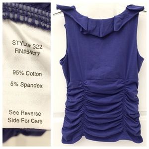 CAbi Ruffle Ruched Stretch Tank Top, tag says Royal blue (I think it s more blueish purple), Style # 322, Size S, NEW with tags ๐ I am selling the matching CAbi Cardigan in a separate listing!! Check it out!!