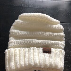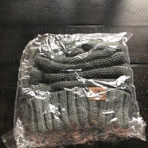 NEW C.C Slouchy Cable Knit Beanie Bundle Gray White One Size Fits Most Acrylic